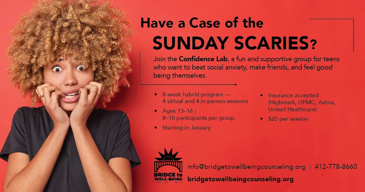 Want support from professionals and peers? Bridge to Well-Being Counseling Center is now offering an eight-week social anxiety group therapy program for teens!